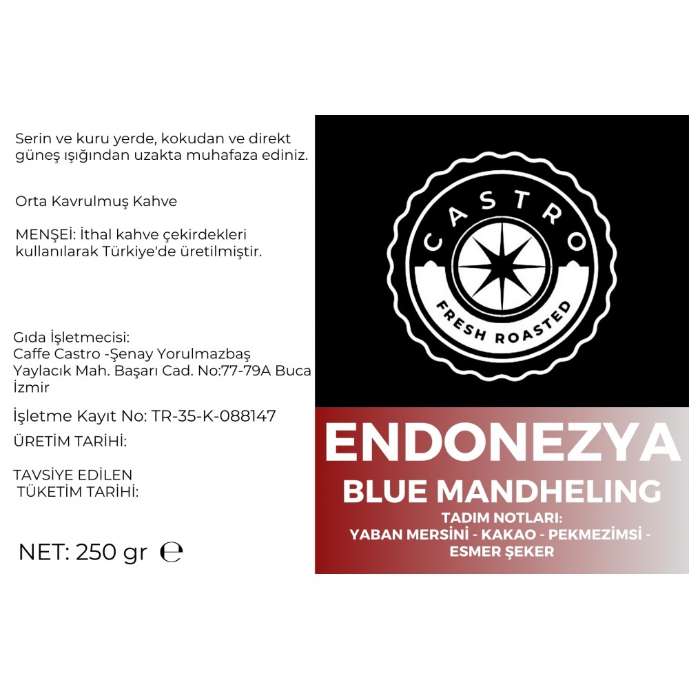 Castro Endonezya Sumatra Blue Mandheling Kahve 500 Gr. (2X250 Gr)